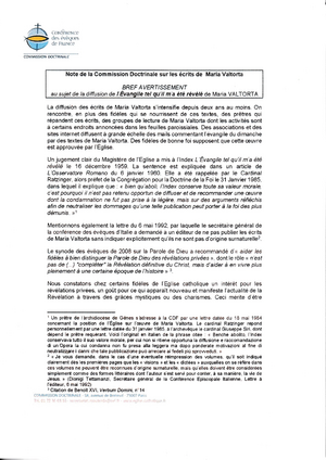 - ↑ La Commission Doctrinale semble douter que ce soit là justement la définition de l'œuvre de Maria Valtorta.